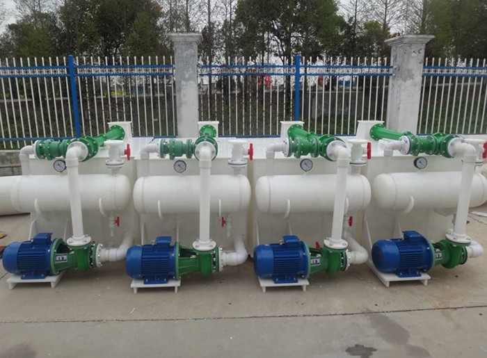 聚丙烯PP真空機組體積小,結構緊可移動,噪音低,能耗低便于綜合利用。水汽串聯噴射真空機組,耗氣量小可獲得更高的真空度,工作穩(wěn)定,使用方便。在安裝使用前,須仔細檢查各部位緊固件是否松動,若有松動須校正擰緊。開機前水池須加滿水,打開泵進口閥,嚴禁脫水空轉及反轉,以防止損壞機封和泵。停機前先放空或真空度降至0.092Mpa以下,然后停機以防真空度過高,倒吸易損壞止回閥,(如止回閥失靈,請打開止回閥蓋,清除雜物)。