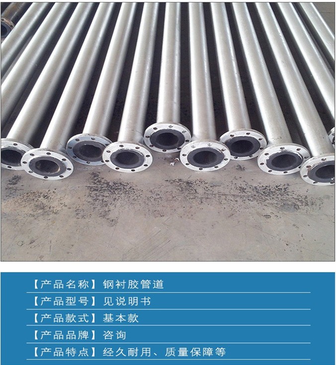 管材的增強骨架鋼管與橡膠層使用高性能的粘合劑復合為一個整體,克服了鋼管耐壓不耐磨, 塑料、橡膠耐磨不耐壓以及玻璃鋼脆抗沖擊性能差等缺點,同時具備鋼管和耐磨橡膠的共同優點,綜合性價比。